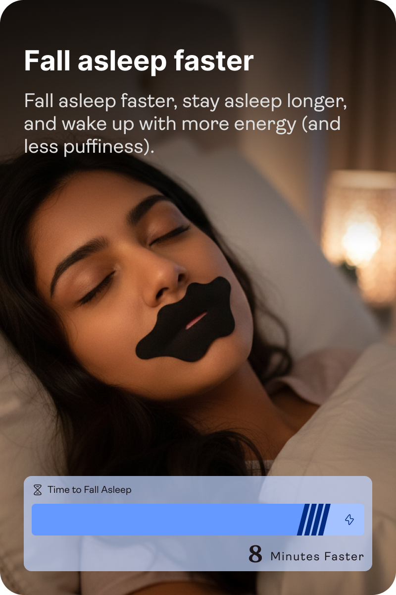 Awesome Mouth Tape™ gently trains you to breathe through your nose, helping you sleep deeper, reduce puffiness, and wake up truly refreshed — no pills, no machines, just better sleep through better breathing.