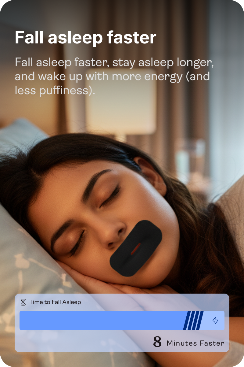 Awesome Mouth Tape™ gently trains you to breathe through your nose, helping you sleep deeper, reduce puffiness, and wake up truly refreshed — no pills, no machines, just better sleep through better breathing.